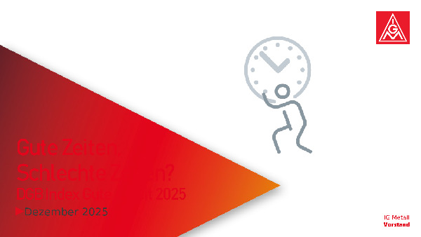 Diese überlangen Arbeitszeiten gibt es auch in Deutschland: Eine Studie des DGB-Index Gute Arbeit, die Ausmaß und Anzahl geleisteter Überstunden in den Blick nahm, kam erst im Frühjahr zu dem Ergebnis, dass bereits heute rund 10 Prozent der Vollzeitbeschäftigten mehr als 48 Stunden pro Woche arbeitet. Dies bedeutet nicht weniger, als dass etwa jeder beziehungsweise jede zehnte Vollzeitbeschäftigte aufgrund von Überstunden massiv gesundheitsgefährdende Arbeitszeiten aufweist.
