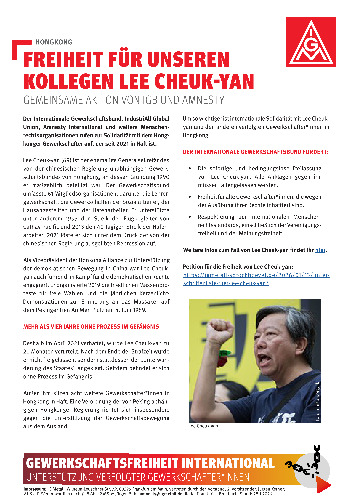 Verfolgter Gewerkschafter in HongkongGewerkschaftsfreiheit International: Unterstützt Lee Cheuk-yan!
