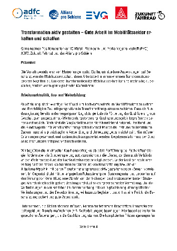 Am 9. September haben wir als IG Metall zusammen mit unseren Bündnispartnern ADFC, Allianz pro Schiene, EVG und Zukunft Fahrrad einen parlamentarischen Abend in Berlin veranstaltet. Hier findet Ihr zwei Positionspapiere dazu, wie wir die Zukunft im Mobilitätssektor gestalten wollen.