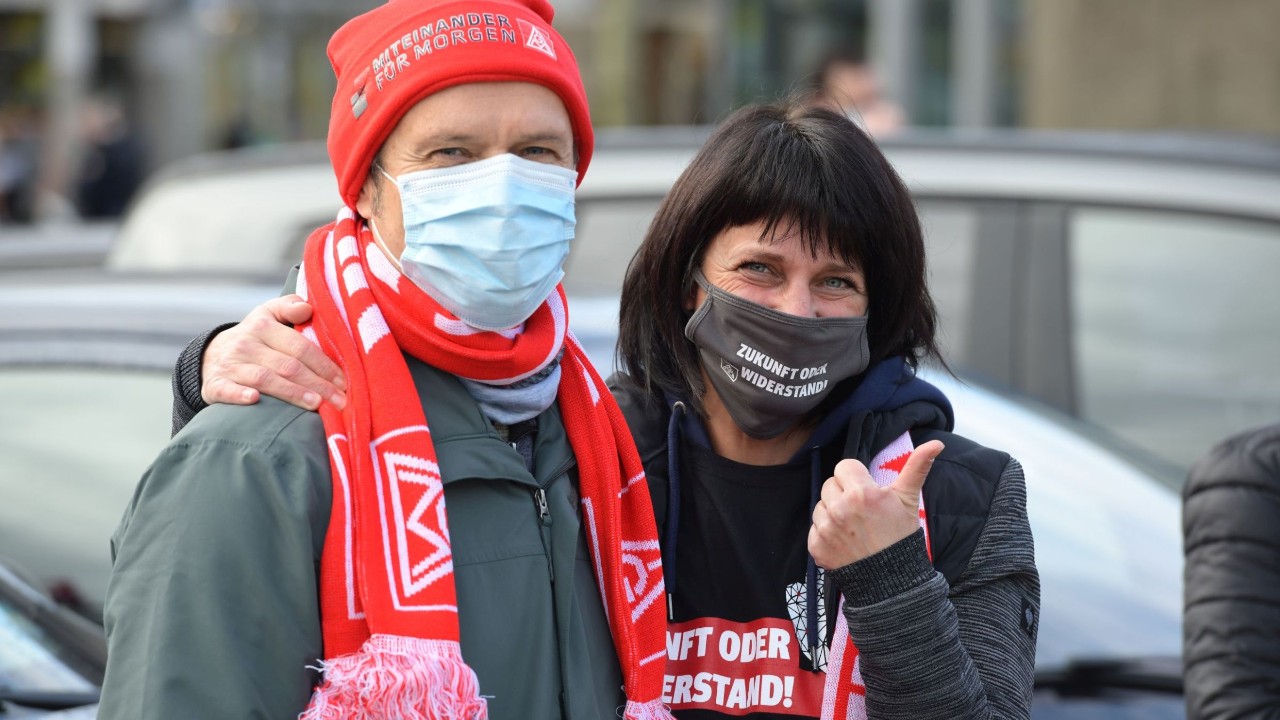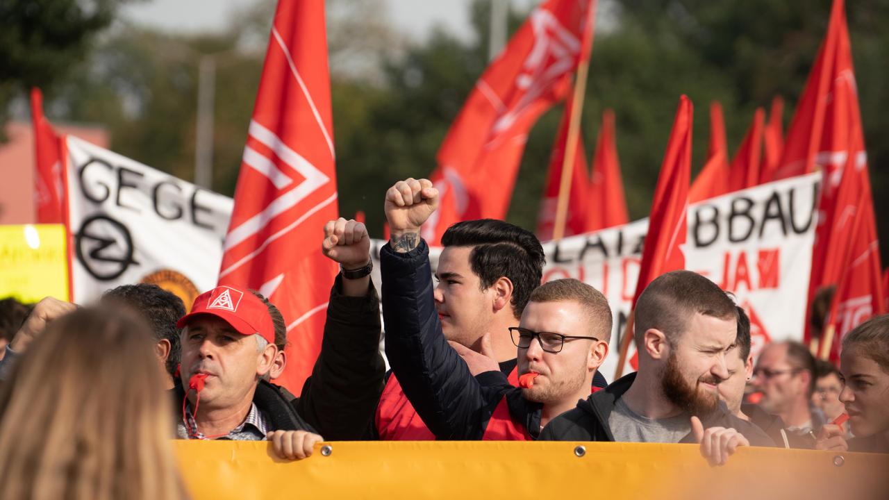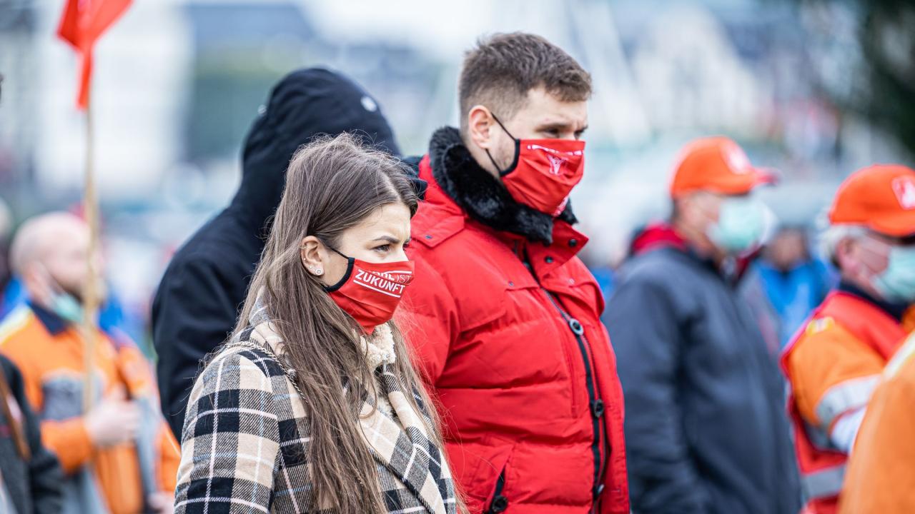 Bei einer erstmals durchgeführten Online-Kundgebung schalteten sich auf www.warnstreik24.de von 13– 14 Uhr rund 11 300 Kolleginnen und Kollegen aus der Metall- und Elektroindustrie sowie der Eisen- und Stahlindustrie zu. Damit haben sich bis heute insgesamt 117 045 Beschäftigte an den Warnstreiks in NRW beteiligt.