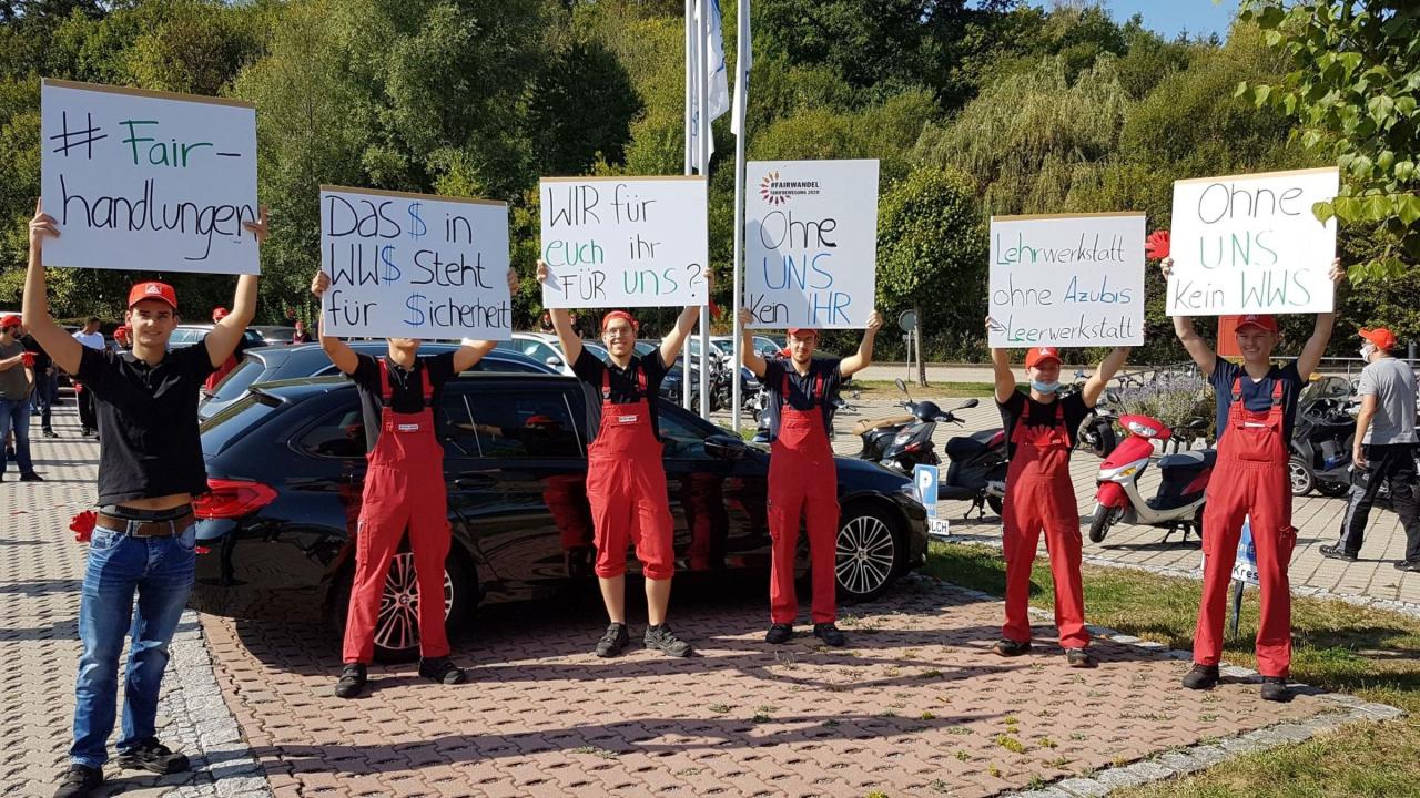In Düsseldorf protestierten heute 2800 Beschäftigte des Sprinterwerks und in Grevenbroich 2000 Beschäftigte von Hydro-Aluminium durch einen verfrühten Arbeitsschluss bzw. eine verspätete Arbeitsaufnahme. In Rheine legten über den Tag verteilt 500 Kolleginnen und Kollegen aus zwei Betrieben die Arbeit nieder, in Gelsenkirchen beteiligten sich 200 Metallerinnen und Metaller aus drei Betrieben an Osterhasen-Aktionen.