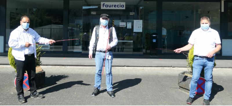 Am 15. Mai fand die erste Aktion unter dem Titel „Maßnehmen mit der IGMetall Betzdorf“ bei Faurecia in Scheuerfeld statt. Beim ersten Betriebsbesuch der IG Metall bei Faurecia, nachdem die Produktion aufgrund der Corona-Pandemie auf Null heruntergefahren werden musste, wurden auch die aktuellen Probleme der Kolleginnen und Kollegen vor Ort ausgetauscht und diskutiert.