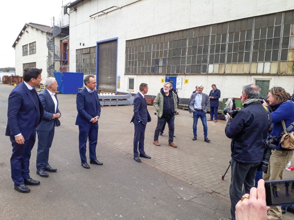 „Produktion soll im Frühsommer wieder aufgenommen werden“, titelte die gemeinsame Pressemitteilung von Werftverwaltung, Geschäftsführung, Eigner, Betriebsrat und IG Metall. „Diese Belegschaft kann es“, sagte Michael Schmidt. Der IG Metall-Geschäftsführer beantwortete mit Betriebsratsvorsitzendem Thomas Jansen und dessen Stellvertreter Michael Nissen die Fragen der versammelten Presse. Michael Schmidt zeigte sich dabei zuversichtlich, dass die Werft eine Zukunft hat. Schließlich habe man über viele Jahre konkurrenzfähige Schiffe gebaut.