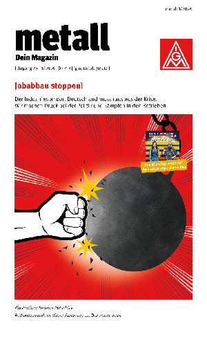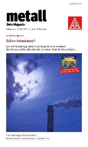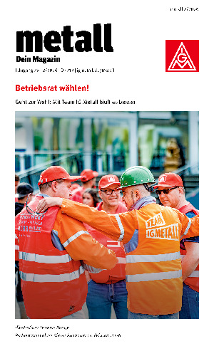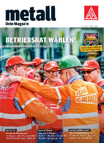 „metall – Dein Magazin“ ist das Mitgliedermagazin der IG Metall. Sechs mal im Jahr erhalten alle Mitglieder die Zeitschrift per Post nach Hause – mit Nachrichten, Reportagen und Serviceratgeber aus der Arbeitswelt. Hier findet Ihr die Ausgaben als PDF.